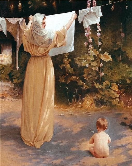 Ponder, if you will, the tasks of a Mother. Contemplate our Holy Mother doing these same tasks for our Lord. He needed to grow into a man, to eat, to drink, to be changed, to be bathed, to be held, to be comforted, to be taught. To be loved.